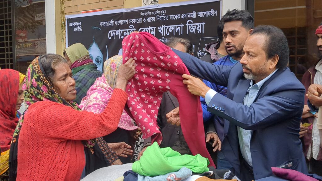 সাবেক প্রধানমন্ত্রী ও বিএনপি চেয়ারপারসন বেগম খালেদা জিয়ার রুহের মাগফিরাত কামনায় সিরাজগঞ্জে জেলা বিএনপির সাধারণ সম্পাদক সাইদুর রহমান বাচ্চুর উদ্যোগে তিন শতাধিক শীতার্ত মানুষের মাঝে শীতবস্ত্র সোয়েটার, চাদর, শিশুদের গরম কাপড় ও কম্বল বিতরণ করা হয়েছে। সোমবার সকাল ১১টায় পৌর শহরের একক সংঘ ক্লাবের সামনে এবং বিকেলে ঘোষপাড়া এলাকার শিশু ও দরিদ্র শীতার্তদের মাঝে এ শীতবস্ত্র বিতরন করা হয়।