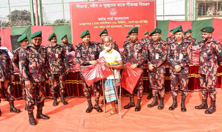 শীতার্ত ও অসহায় মানুষের পাশে দাঁড়িয়েছে বর্ডার গার্ড বাংলাদেশ (বিজিবি)। রবিবার (১১ জানুয়ারি) সকালে বিজিবির উদ্যোগে রাজধানীর নবাবগঞ্জ পার্কসংলগ্ন এলাকায় বসবাসরত ৮০০ জন শীতার্ত ও অসহায় মানুষের মধ্যে শীতবস্ত্র বিতরণ করা হয়।
