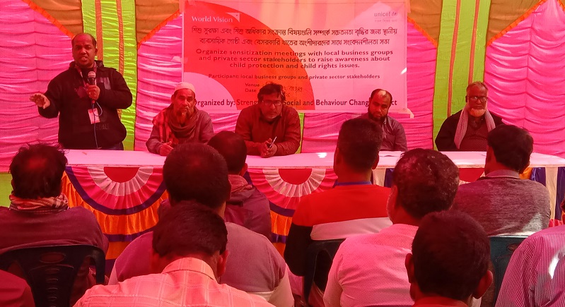 নাগেশ্বরী উপজেলায় বাল্যবিয়ে বন্ধে, শিশু সুরক্ষা এবং শিশু অধিকার সংক্রান্ত বিষয়গুলি সম্পর্কে সচেতনতা বৃদ্ধির জন্য স্থানীয় ব্যবসায়িক গোষ্ঠী এবং বেসরকারি খাতের অংশীদারদের সাথে সংবেদনশীলতা সভা অনুষ্ঠিত হয়েছে।