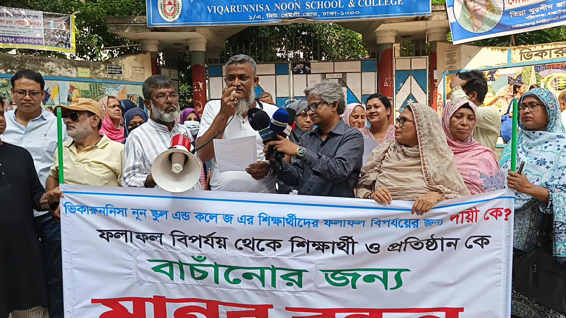 রাজধানীর স্বনামধন্য শিক্ষা প্রতিষ্ঠান ভিকারুননিসা নূন স্কুল অ্যান্ড কলেজের সামনে মানববন্ধন করেছেন প্রতিষ্ঠানটির শিক্ষার্থীর অভিভাবকবৃন্দ। ভিকারুননিসার ফলাফল বিপর্যয় থেকে শিক্ষার্থী ও প্রতিষ্ঠানকে বাঁচানোর জন্য তাদের এই মানববন্ধন বলে জানিয়েছেন আয়োজকরা।