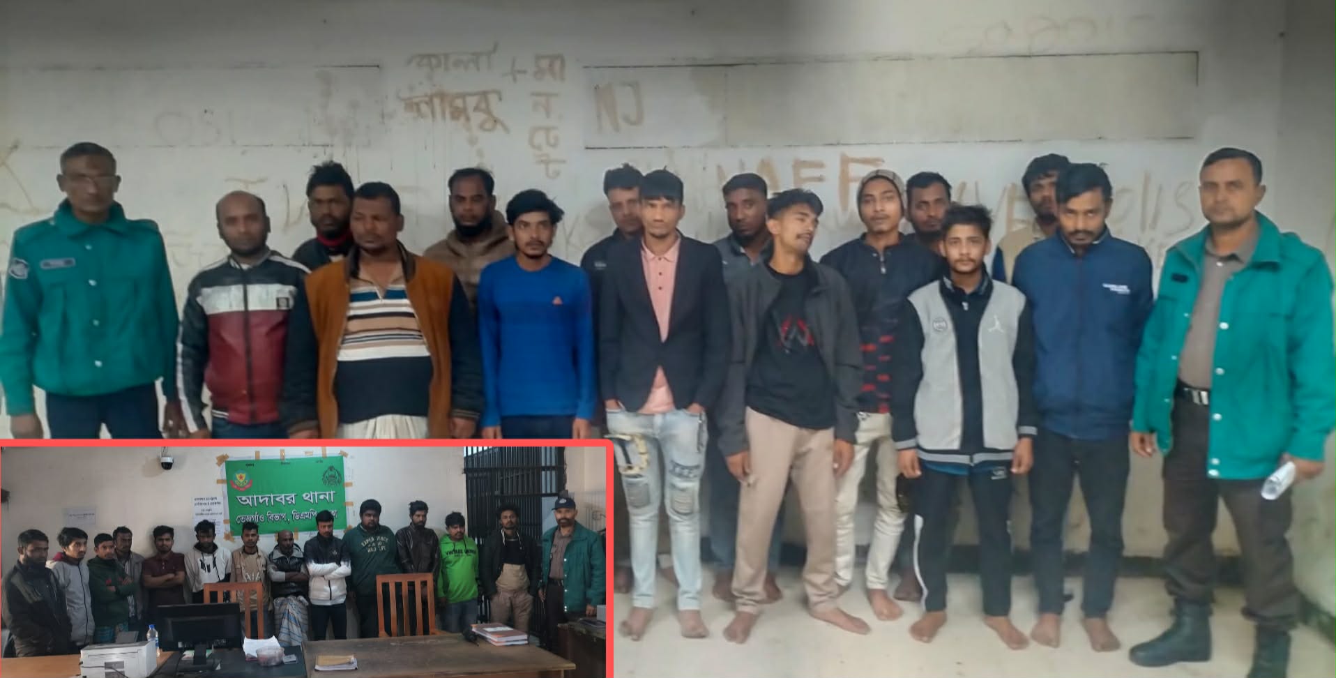কাল্লু (৪৫), সানজু (২৫), রবিউল ইসলাম (২৮), সনু (২৮), সানজু (২৩), জাহাঙ্গীর (৩৮),