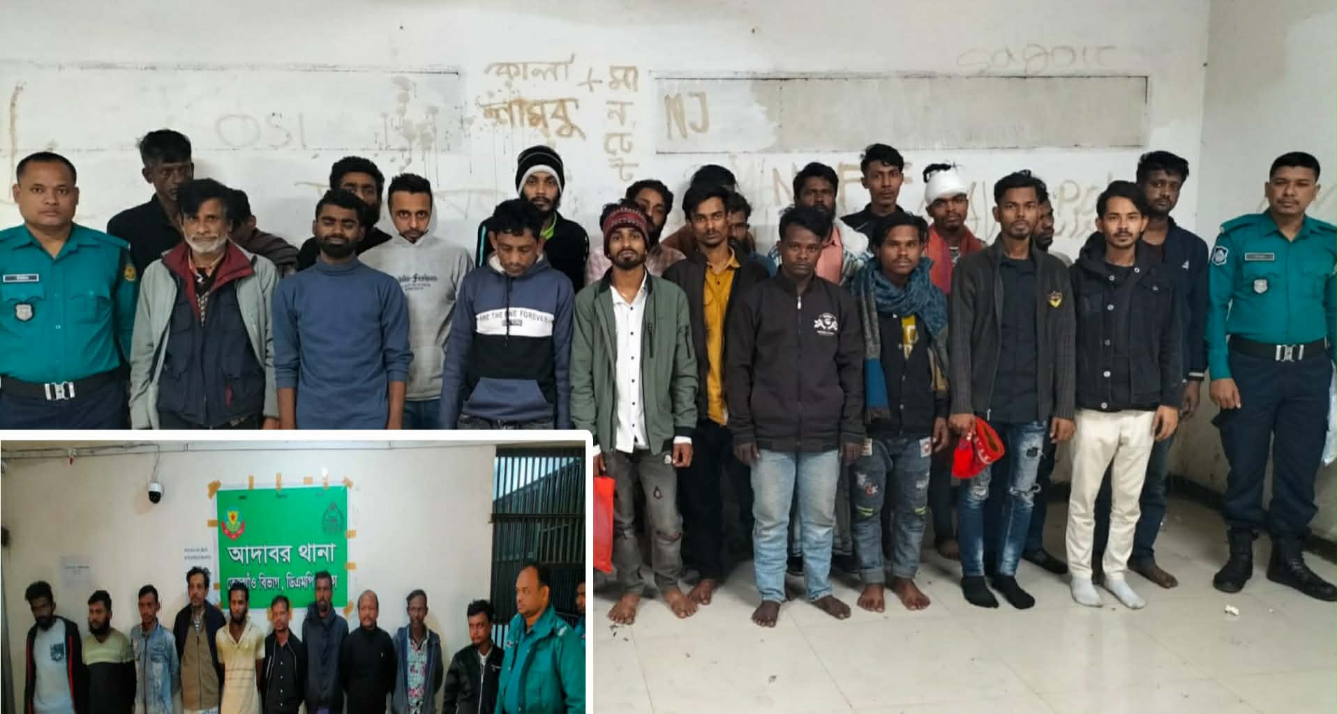 আদাবর থানা এলাকায় গ্রেফতাররাকৃতরা হলো,মো. জাকির মুন্সি (৪৯), মো. রিপণ (৪২),মো. কাঞ্চন (৩৫), মো. সিলন (৩৫), মো. জামিরুল ইসলাম (২৫), মো. সিরাজুল ইসলাম (২৮), মো. মিন্টু (৩৫), মো. আব্দুল জলিল (৪৮), আনিক সরদার (৩০) ও মো. আব্দুল মালেক (৩২)।