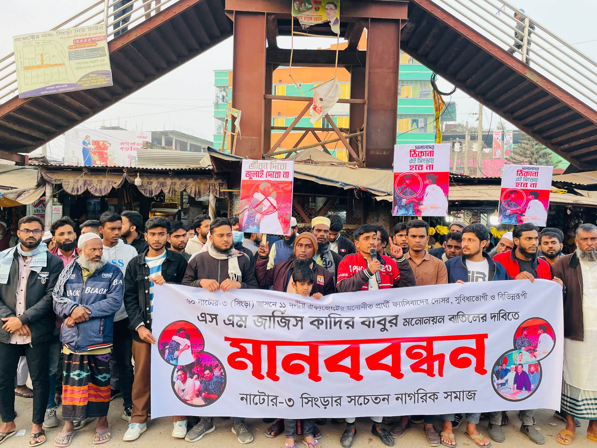 নাটোর-৩ সিংড়া আসনে ১০ দলীয় জোট থেকে এনসিপির প্রার্থী জার্জিস কাদির বাবুকে পরিবর্তনের দাবিতে মানববন্ধন করেছে সচেতন নাগরিকের ব্যানারে শতাধিক মানুষ।