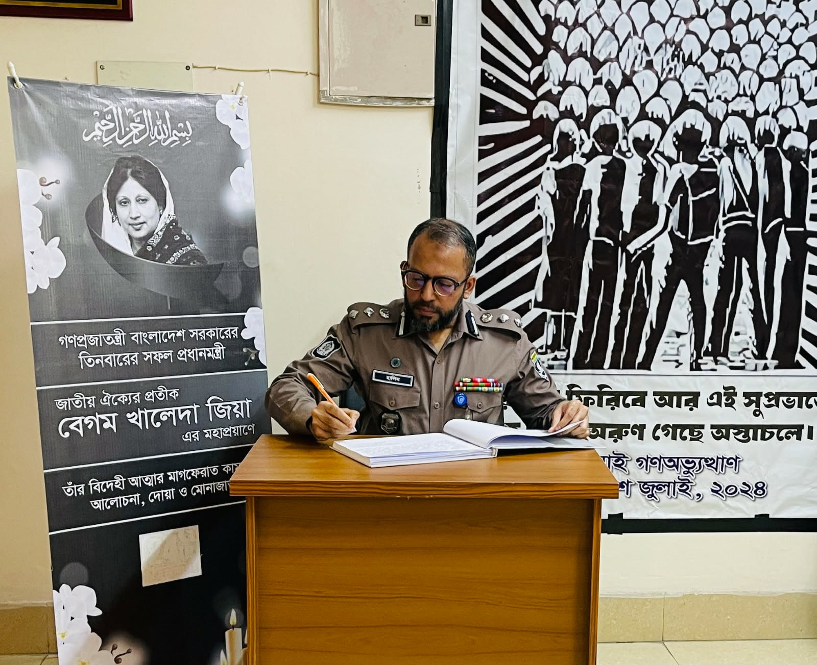 শোক বইয়ে স্বাক্ষর শেষে অ্যাডিশনাল ডিআইজি মোহাম্মদ আব্দুল হালিম বলেন, দেশের উন্নয়ন ও মানুষের অধিকার প্রতিষ্ঠায় বেগম খালেদা জিয়ার অবদান জাতি চিরকাল শ্রদ্ধার সঙ্গে স্মরণ করবে। তাঁর সাহস, নেতৃত্ব ও দেশপ্রেম ভবিষ্যৎ প্রজন্মের জন্য অনুকরণীয় হয়ে থাকবে। তিনি কেবল একজন রাজনৈতিক নেত্রী নন, ছিলেন কোটি মানুষের আস্থার প্রতীক।
