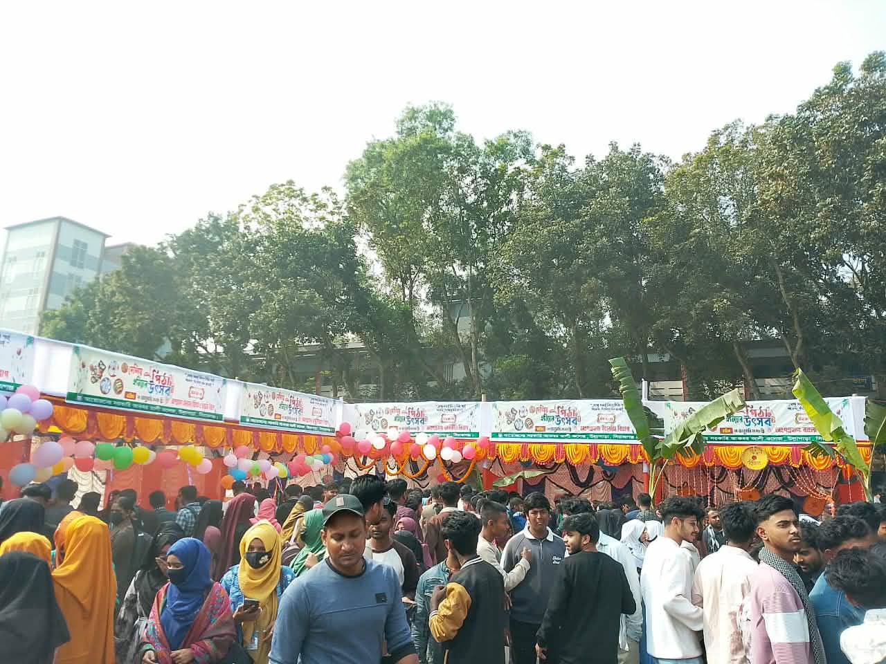 ইসলামের ইতিহাস ও সংস্কৃতি বিভাগের শিক্ষার্থী মোছাঃ আফরোজা খাতুন ও মোছাঃ হালিমা খাতুন জানান, তাদের স্টলে রাখা পাটিসাপ্টা, ঝিনুক পিঠা, নকশি পিঠা ও মিষ্টি কুমড়া পিঠা সবচেয়ে বেশি বিক্রি হয়েছে।