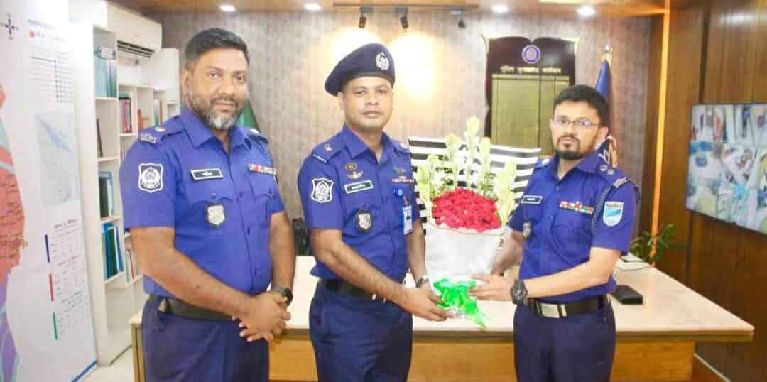 যোগদানের পর তাকে ফুল দিয়ে স্বাগত জানান শরীয়তপুর জেলার পুলিশ সুপার মো. নজরুল ইসলাম।