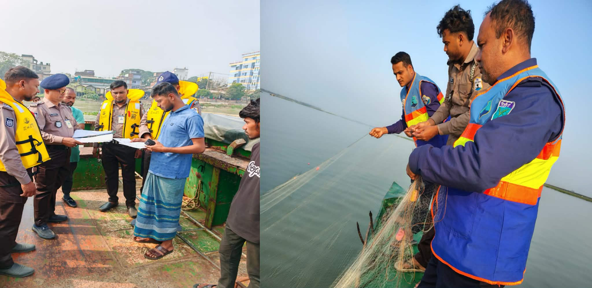 নৌ পুলিশ জানিয়েছে, দেশের মৎস্য সম্পদ রক্ষা ও নৌ পথে নিরাপত্তা নিশ্চিতকরণে নৌ পুলিশ দেশব্যাপী বিভিন্ন অভিযান পরিচালনা করছে। গত সাত দিনব্যাপী নৌ পুলিশের বিভিন্ন অভিযানে মোট ৩ কোটি বাইশ লক্ষ পঁয়ষট্টি হাজার তিনশত মিটার অবৈধ জাল, ৪ হাজার আটশত চৌষট্টি কেজি মাছ, ১২০ কেজি জেলীযুক্ত চিংড়ি জব্দ করা হয় এবং নদী থেকে ৩৪২ টি ঝোপঝাড় ধ্বংস করা হয়।