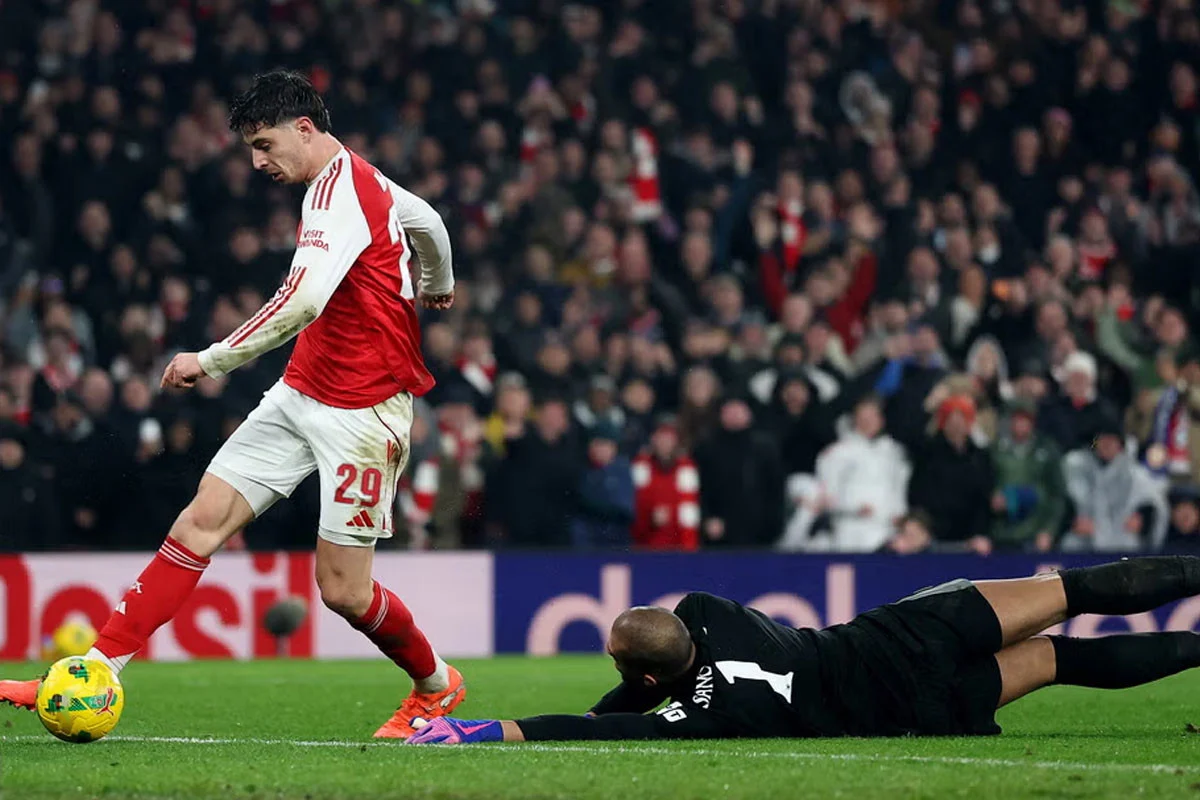 নির্ধারিত ৯০ মিনিট গোলশূন্য থাকার পর অতিরিক্ত সময়ে এসে দৃশ্যপট বদলে দেন কাই হাভার্টজ। ৯৭ মিনিটে ডেকলান রাইসের লম্বা পাস ধরে বক্সে ঢুকে ওয়ান-অন-ওয়ানে গোলরক্ষককে কাটিয়ে জাল কাঁপান জার্মান তারকা। ওই এক গোলেই ১-০ জয় নিশ্চিত হয় গানারদের। প্রথম লেগের ৩-২ জয়ের সঙ্গে মিলিয়ে ৪-২ অ্যাগ্রিগেটে লিগ কাপের ফাইনালে উঠল মিকেল আর্তেতার দল।