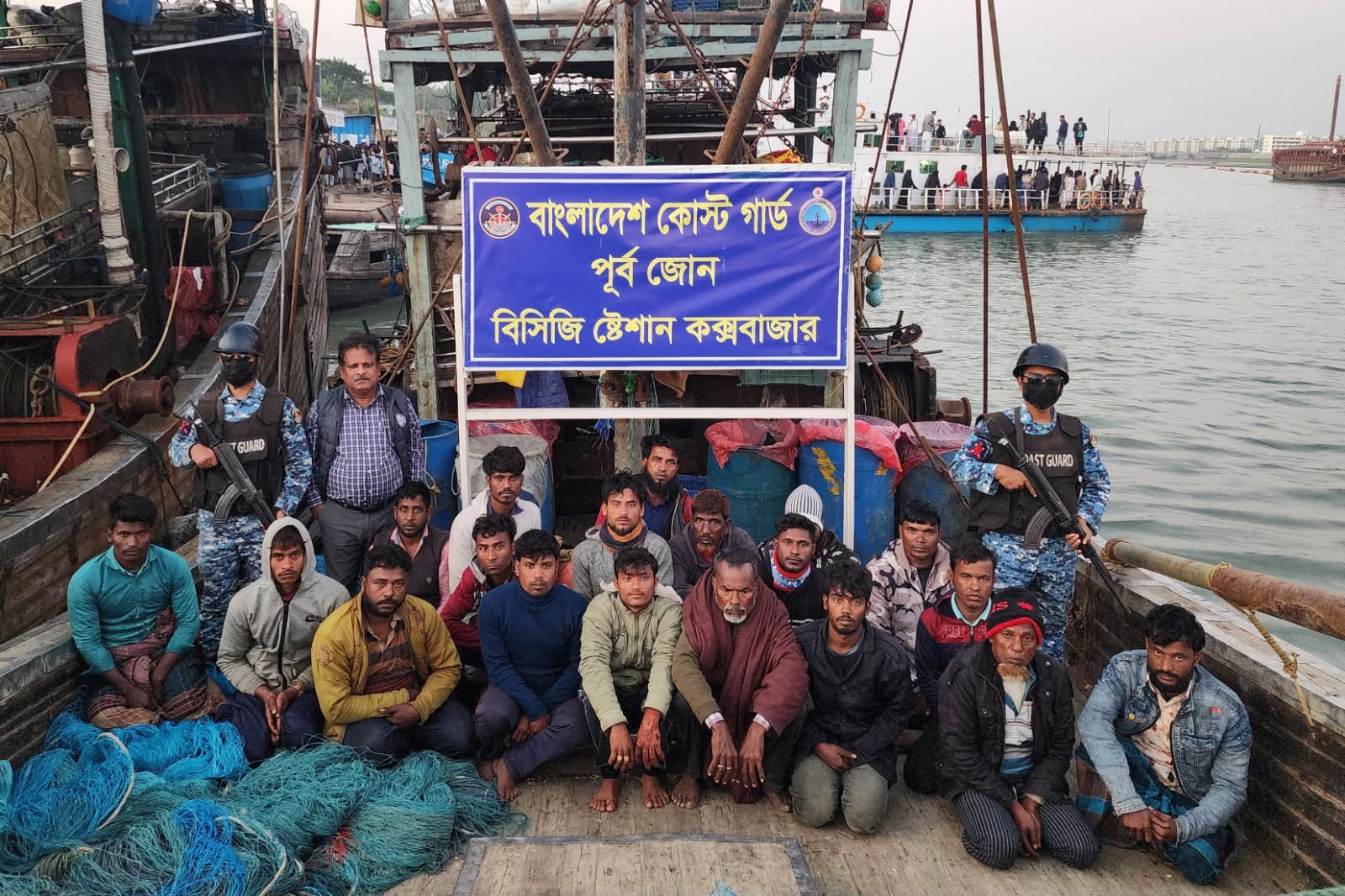 পরবর্তীতে বোট দুটি তল্লাশি করে আনুমানিক ৩১ লাখ টাকা মূল্যের ১২টি ট্রলিং জাল এবং প্রায় ১,০০০ কেজি সামুদ্রিক মাছ উদ্ধার করা হয়। এ সময় বোটে থাকা ৩৪ জন জেলেকে আটক করা হয়।