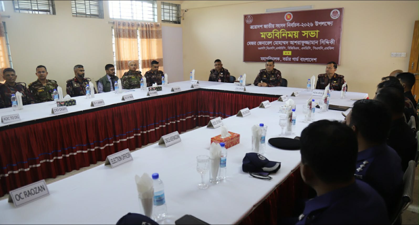 ত্রয়োদশ জাতীয় সংসদ নির্বাচন উপলক্ষে বর্ডার গার্ড বাংলাদেশ (বিজিবি)-এর মহাপরিচালক মেজর জেনারেল মোহাম্মদ আশরাফুজ্জামান সিদ্দিকী চট্টগ্রাম-৬ এবং চট্টগ্রাম-২ আসনের নির্বাচনী বেইজ ক্যাম্প পরিদর্শন করেছেন। এ সময় তিনি নিরাপত্তা পরিস্থিতি পর্যবেক্ষণ ও দায়িত্বপূর্ণ নির্বাচনী প্রস্তুতি সম্পর্কে খতিয়ে দেখেন।