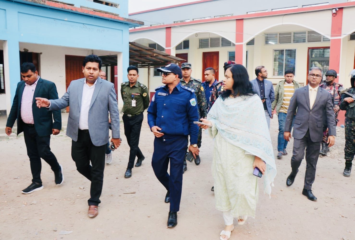 এ সময় তারা ভোটকেন্দ্রের নিরাপত্তা ব্যবস্থা, সিসিটিভি ক্যামেরা, আইনশৃঙ্খলা রক্ষাকারী বাহিনীর অবস্থান, ভোটারদের প্রবেশ ও বের হওয়ার পথসহ সার্বিক প্রস্তুতি খতিয়ে দেখেন। পাশাপাশি স্থানীয় জনপ্রতিনিধি ও দায়িত্বপ্রাপ্ত কর্মকর্তাদের সঙ্গে কথা বলে প্রয়োজনীয় দিকনির্দেশনা প্রদান করেন।