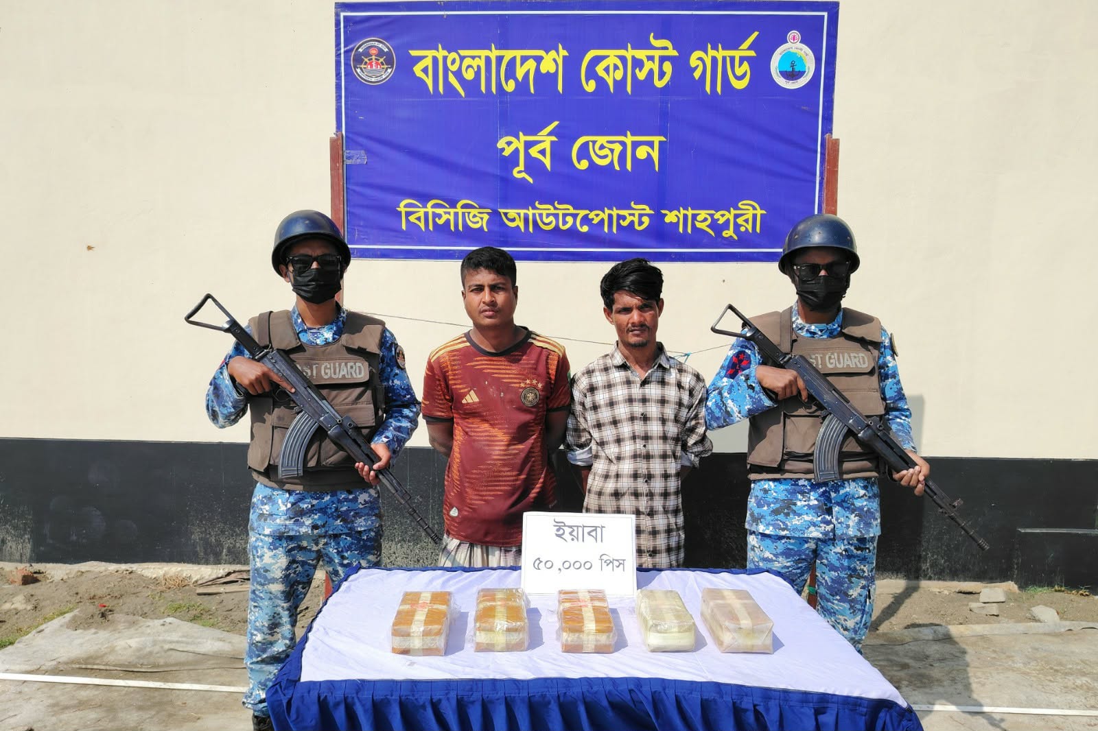 কক্সবাজারের টেকনাফে প্রায় ২ কোটি ৫০ লাখ টাকা মূল্যের ৫০ হাজার পিস ইয়াবাসহ দুই মাদক কারবারিকে আটক করেছে বাংলাদেশ কোস্ট গার্ড।