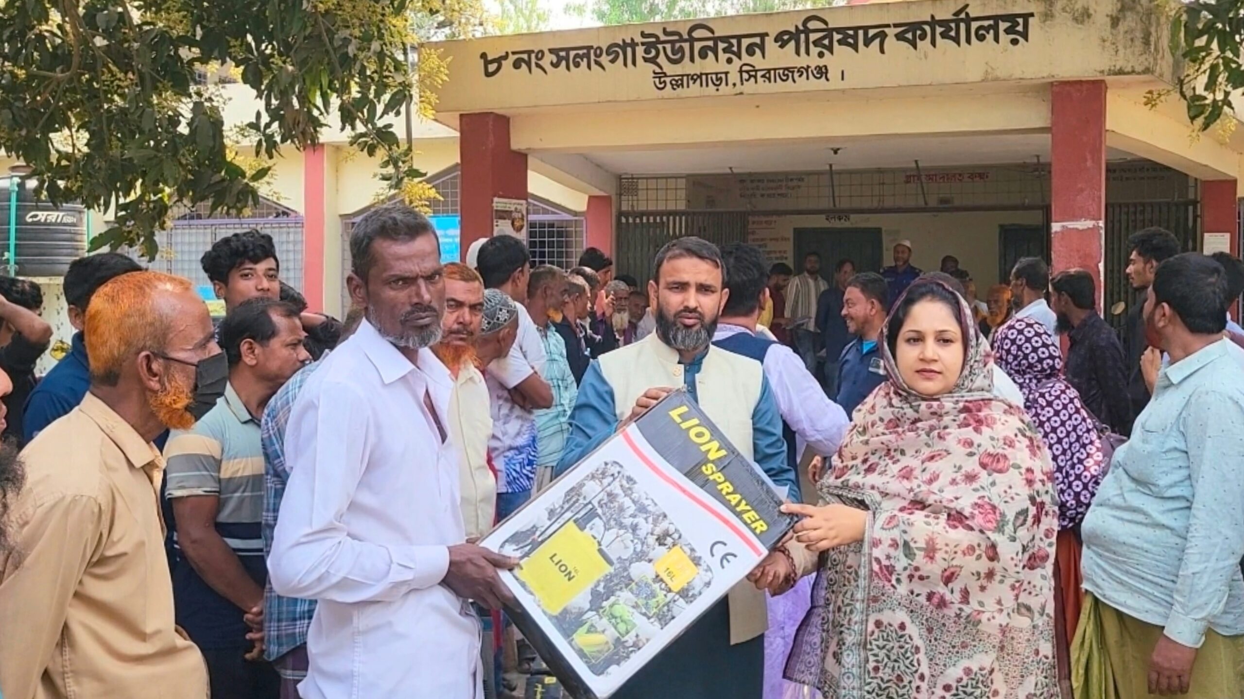 সিরাজগঞ্জের সলঙ্গা ইউনিয়ন পরিষদে ৭০ জন কৃষকের মাঝে স্প্রে মেশিন বিতরণ করা হয়েছে।