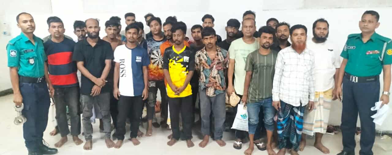 গ্রেফতাররা হলো,নয়ন (২৫), সামির (২৫), ইউসুফ (২৬), বন্যা (৩৭), নুর ইসলাম (২৬), আবিদ হোসেন (৩৮), লতিফ (৫০), মনোয়ার (২৪), মোল্লা রুবেল (৩২), আলামিন (৪৫), সাগর (১৯), হীরা (৩০), রুহুল আমিন (৪৩), আসলাম (২০), মুরাদ (২১), তাজউদ্দীন (৪০), মাসুম (৩৮), ) জাবেদ (৪১), বাবু (৩১), কাজী আরিফ (৩০), আলমগীর (৪০), বুলু (২১), জাফর (৪০), ২৪। ফিরোজ (২৬), আলামিন (২০) ও ভুট্ট (৪৮)।