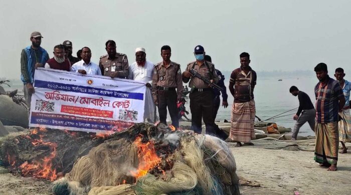 কাজিপুরে ভ্রাম্যমান অভিযানে ২ লাখ টাকা মূল্যের অবৈধ  জাল জব্দ ও ১জনকে অর্থদন্ড