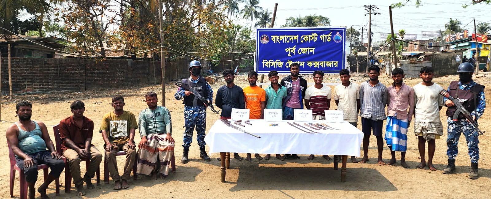 বাংলাদেশ কোস্ট গার্ড কক্সবাজারের মহেশখালী থানাধীন সোনাদিয়া চর সংলগ্ন এলাকায় অভিযান চালিয়ে অস্ত্র ও গোলাবারুদসহ কুখ্যাত ডাকাত জাহাঙ্গীর বাহিনীর প্রধান জাহাঙ্গীর (২৮) ও তার ৮ সহযোগীকে আটক করেছে। এ সময় ডাকাতদের কবলে পড়া ৪ জন জেলেকে জীবিত উদ্ধার করা হয়।