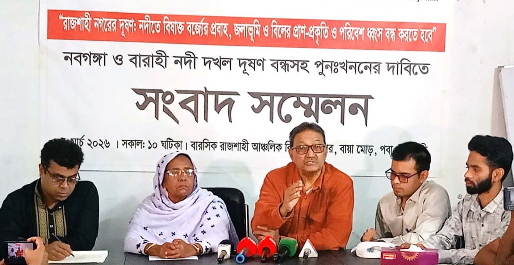 রাজশাহীর পদ্মা থেকে উৎসারিত নবগঙ্গা ও বারাহী নদী দখল-দূষণ বন্ধ এবং পুনঃখননের দাবিতে সংবাদ সম্মেলন করেছে পরিবেশবাদী সংগঠনগুলো।