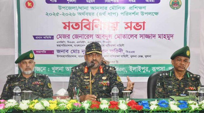 বাংলাদেশ আনসার ও গ্রাম প্রতিরক্ষা বাহিনীর মহাপরিচালক মেজর জেনারেল আবদুল মোতালেব সাজ্জাদ মাহমুদ বলেছেন, রাষ্ট্রের নিরাপত্তা ও জনসেবার সম্মিলিত প্রয়াসে আনসার-ভিডিপি দেশের জনগণের নিকটতম প্রতিরক্ষা স্তর হিসেবে কাজ করছে। বৃহস্পতিবার(৩০