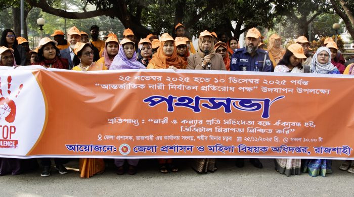 জেলা প্রশাসন ও মহিলা বিষয়ক অধিদপ্তরের যৌথ উদ্যোগে আন্তর্জাতিক নারী নির্যাতন প্রতিরোধ পক্ষ উদযাপন উপলক্ষে রাজশাহীতে এক পথসভা অনুষ্ঠিত হয়েছে। মঙ্গলবার (২৫ নভেম্বর) সকালে জেলা প্রশাসক কার্যালয়ের শহিদ মিনার চত্বরে