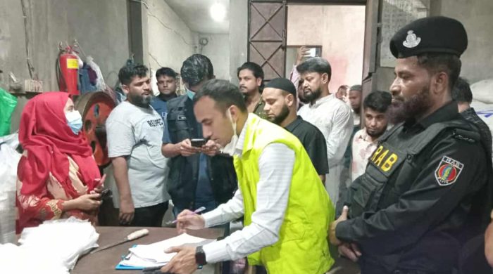 রাজধানীর চকবাজার এলাকায় ভ্রাম্যমাণ আদালতের অভিযানে সাড়ে তিন লাখ টাকা জরিমানা, বিপুল পরিমাণ নিষিদ্ধ পলিথিন জব্দ এবং কয়েকটি প্রতিষ্ঠান সিলগালা করেছে র্যাপিড অ্যাকশন ব্যাটালিয়ন (র্যাব)। বৃহস্পতিবার(৬ নভেম্বর) র্যাব সদর দপ্তরের আরও পড়ুন