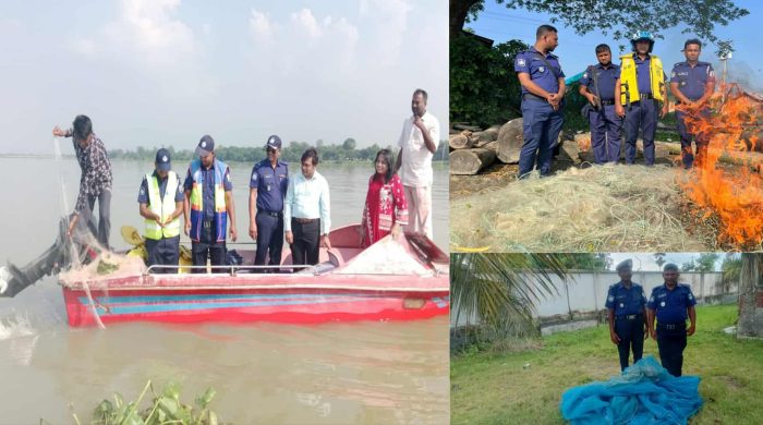 গত সাতদিনে চলমান অভিযানে বিপুল পরিমাণ নিষিদ্ধ ঘোষিত অবৈধ জাল, মাছ ও মাছের পোনা উদ্ধারসহ ৩১০ জনকে আটক করেছে নৌ পুলিশ। বৃহস্পতিবার (৬ নভেম্বর ) নৌ পুলিশের মিডিয়া কর্মকর্তা (