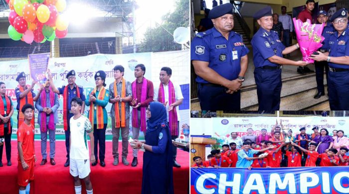 সাম্প্রদায়িক সম্প্রীতি, পারস্পরিক সৌহার্দ্য ও শান্তিপূর্ণ সহাবস্থানের অনুপ্রেরণায় রাঙ্গামাটি জেলা পুলিশের আয়োজনে আজ রাঙ্গামাটি মারি স্টেডিয়ামে সম্প্রীতি ফুটবল ম্যাচ-২০২৫-এর উদ্বোধন ও পুরস্কার বিতরণী অনুষ্ঠান অনুষ্ঠিত হয়েছে। অনুষ্ঠানে প্রধান অতিথি হিসেবে